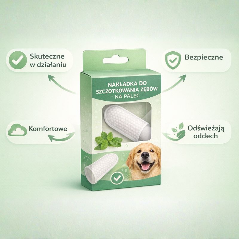 Nakładka na palec pozwala w naturalny i wygodny sposób zadbać o zęby psa bez stresu i walki ze szczoteczką.